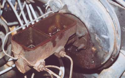 DIIIIIIIIE!!!!!"A failing brake system falls into the latter category. The brakes on Col. Mosby, the resident 1974 Dodge 100 pickup, gave up their last just as it rolled into the garage to be serviced. We had to stop it with the trans. Ouch. Final diagnosis: new master cylinder and power brake booster. We bought the combination unit from Cardone (part #A1B-50-3716 at our local parts store) to make our lives easier. It's called a "loaded" booster. We also bought two quarts of brake fluid to flush the system.